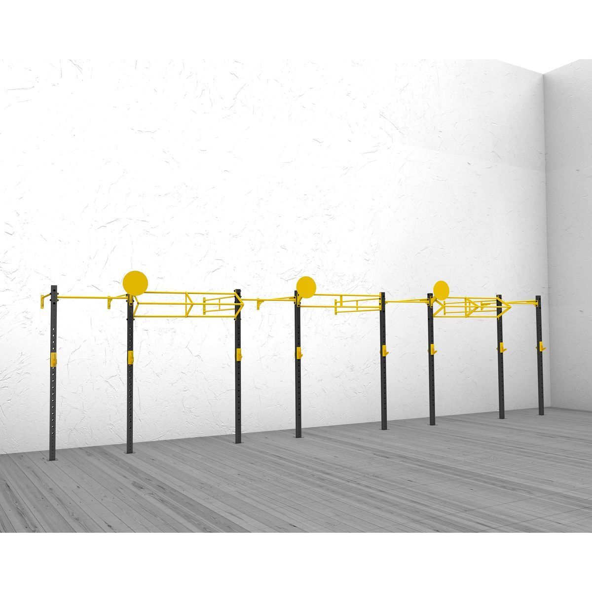А0324 Функциональная рама 1100-1100.Функциональная рама для кроссфита – неотъемлемый атрибут любого crossfit-зала, универсальное решение необходимое для проведения комплексных тренировок и выполнения силовых упражнений.Основные элементы рамы выполнены из профильной трубы 80*80*3 мм,трубы d32 мм и листов металла 8 и 10 мм. Состав:Стойка перфорированная 80х80, ZSO-2680 — 4 шт Перекладина двойная d32/48, ZSO-1100- 2 шт Перекладина одинарная d32, ZSO-1100 — 2 шт Крюки для штанги, ZSO, (пара)- 2 шт