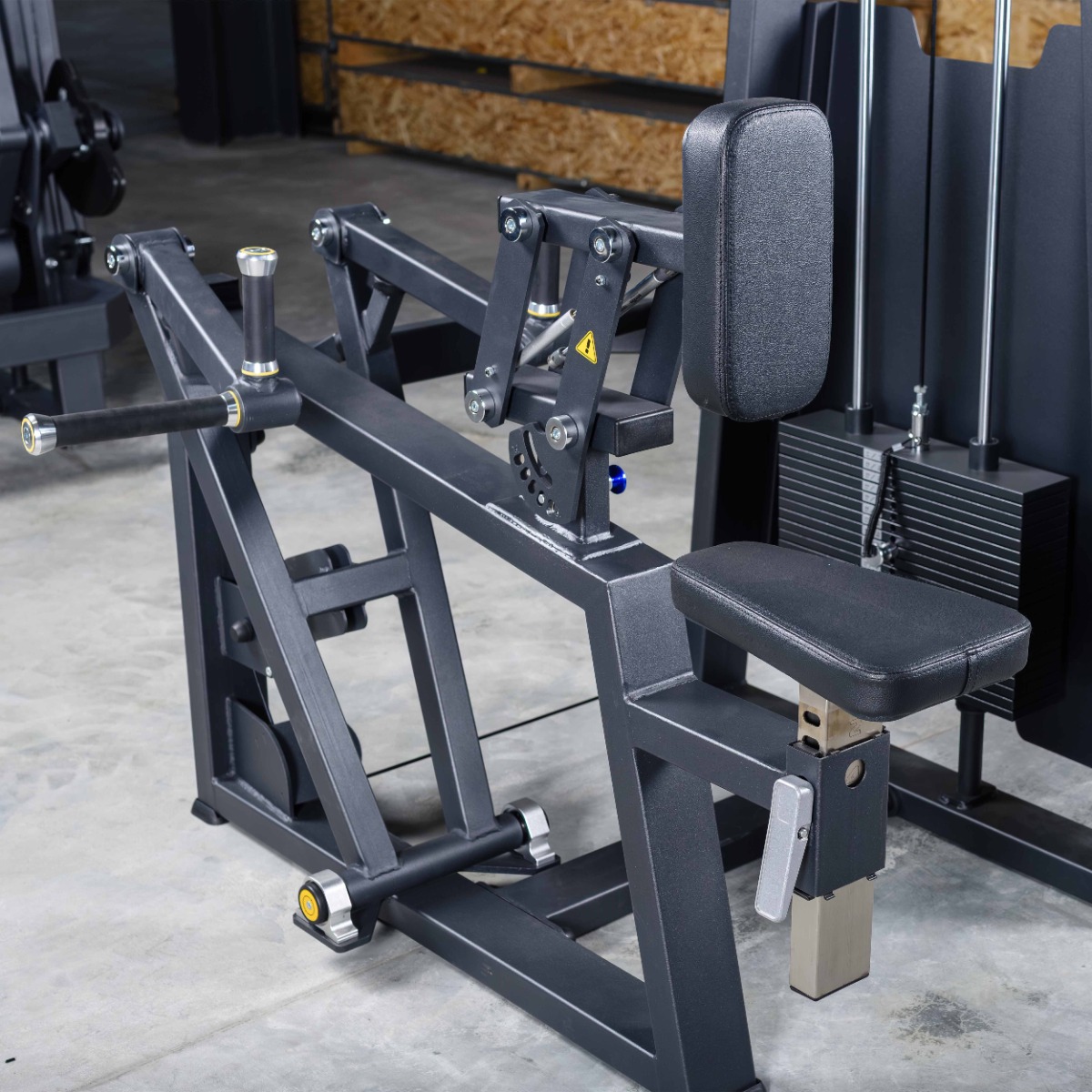 Система нагрузки – тросовая, с весовым стеком 100 кг. Весовой стек выполнен из стальных плит с порошковым покрытием.
