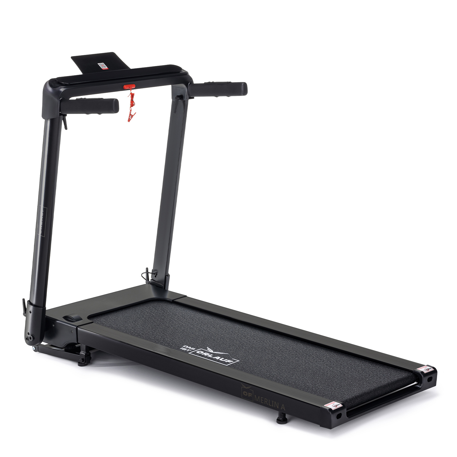 Orlauf Merlin A складывается с толщиной всего 25 см, что позволяет хранить тренажер в вертикальном и горизонтальном положении. Дорожка оснащена транспортировочными роликами для удобного перемещения. Модель выполнена в цвете Starless Night, что позволяет ей гармонично вписаться в различные интерьеры.