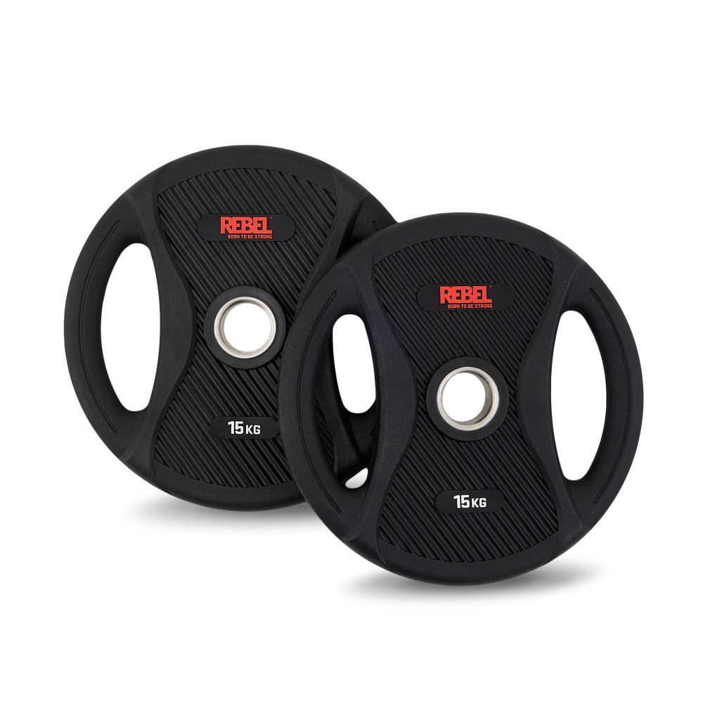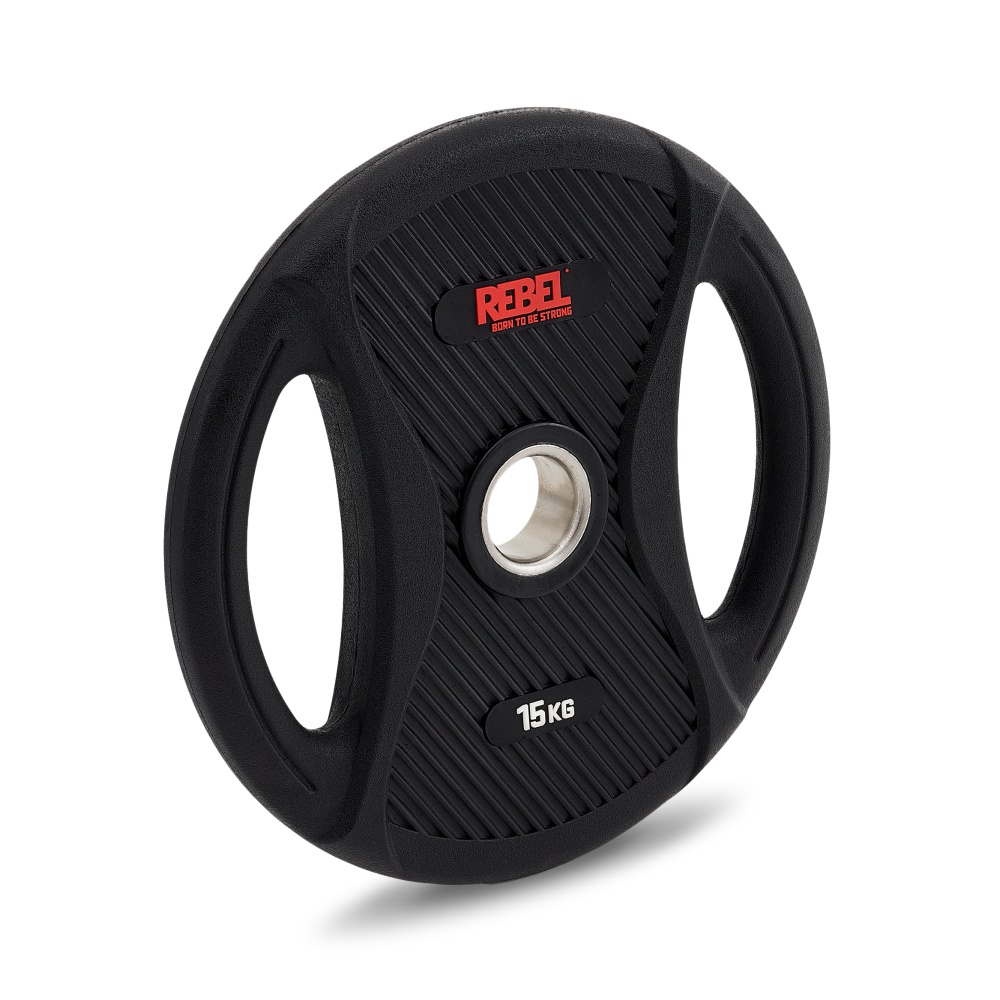 Диск олимпийский обрезиненный с двумя хватами 15 кг REBEL