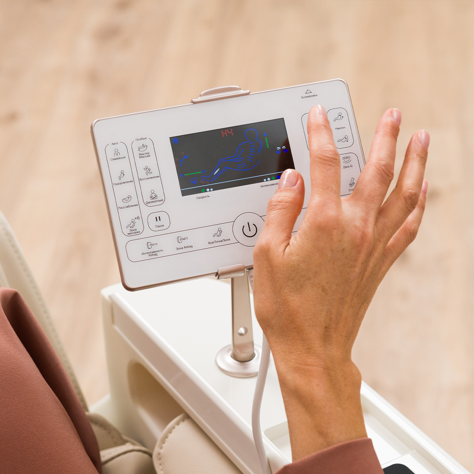 34 воздушные подушки создают воздушно-компрессионный массаж от шеи до стоп, обеспечивая лимфодренажный эффект и улучшая кровообращение. Функция Zero-G погружает пользователя в состояние невесомости, способствуя максимальному расслаблению.
