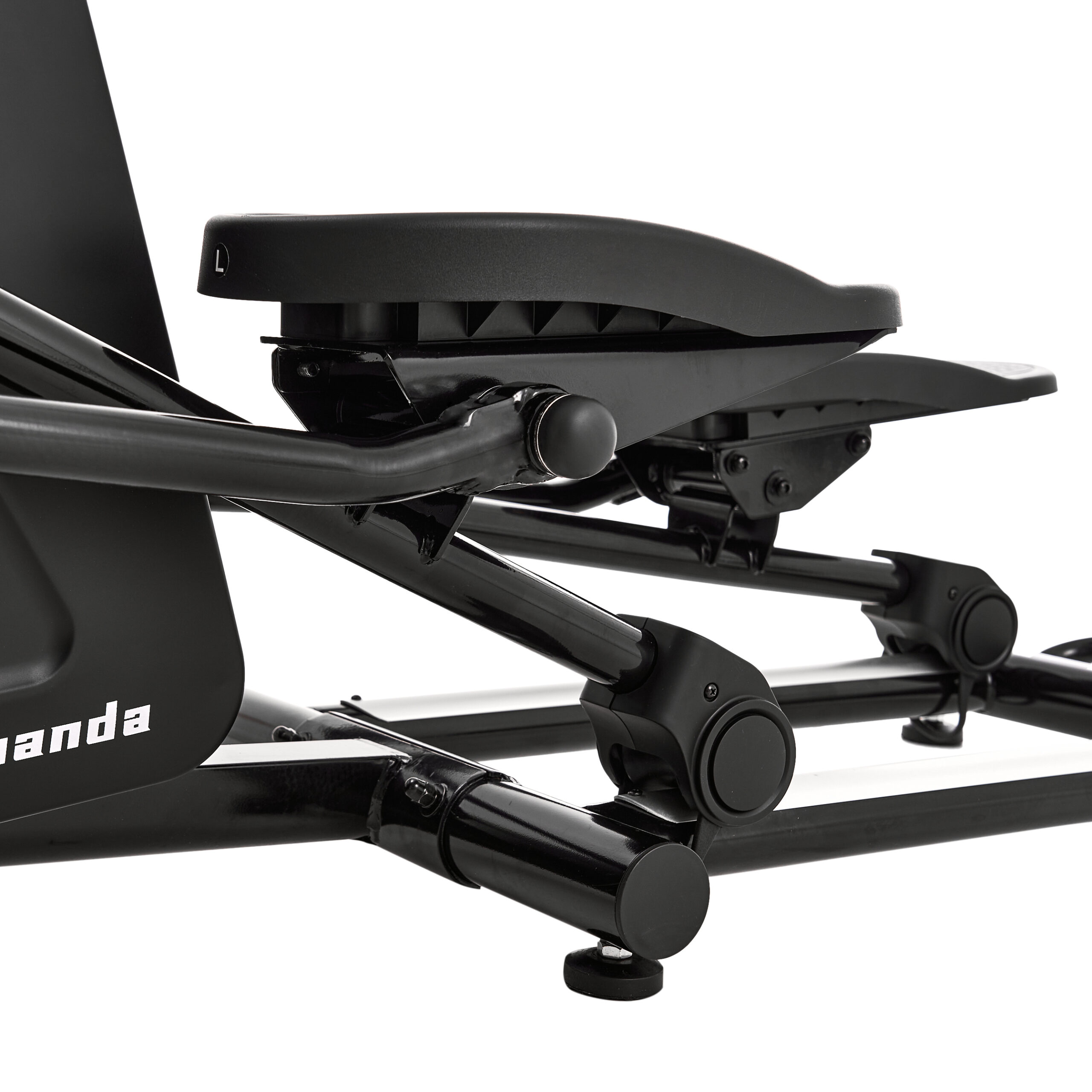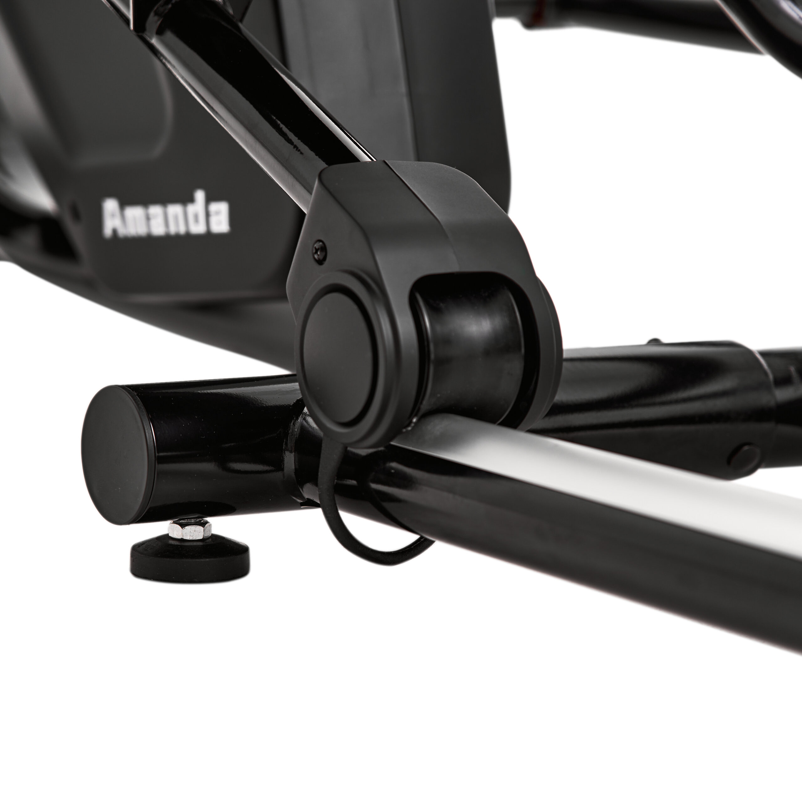 Тренажер оснащен транспортировочными роликами и компенсаторами неровности пола.