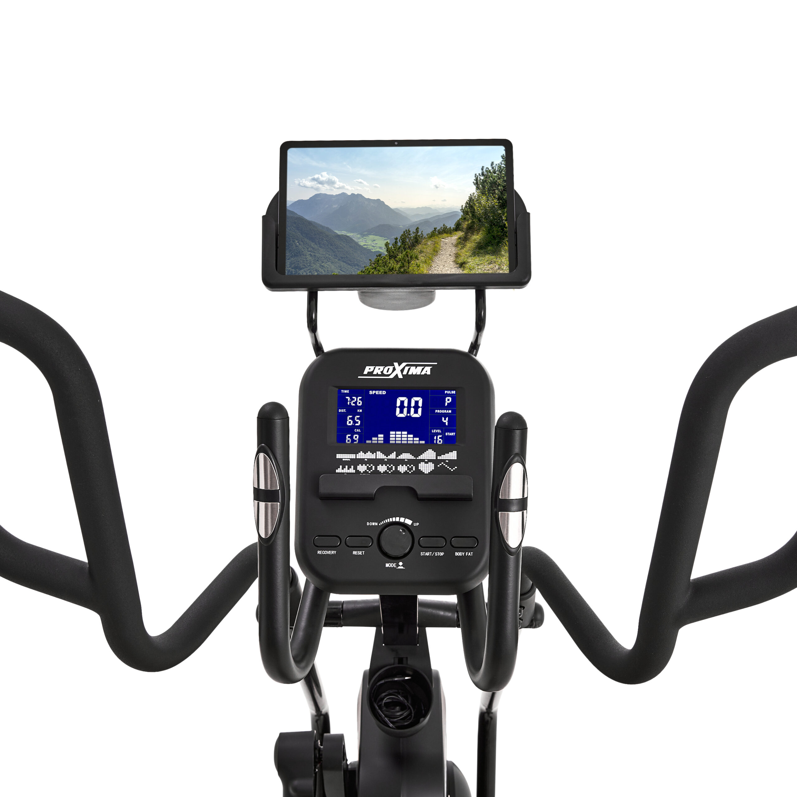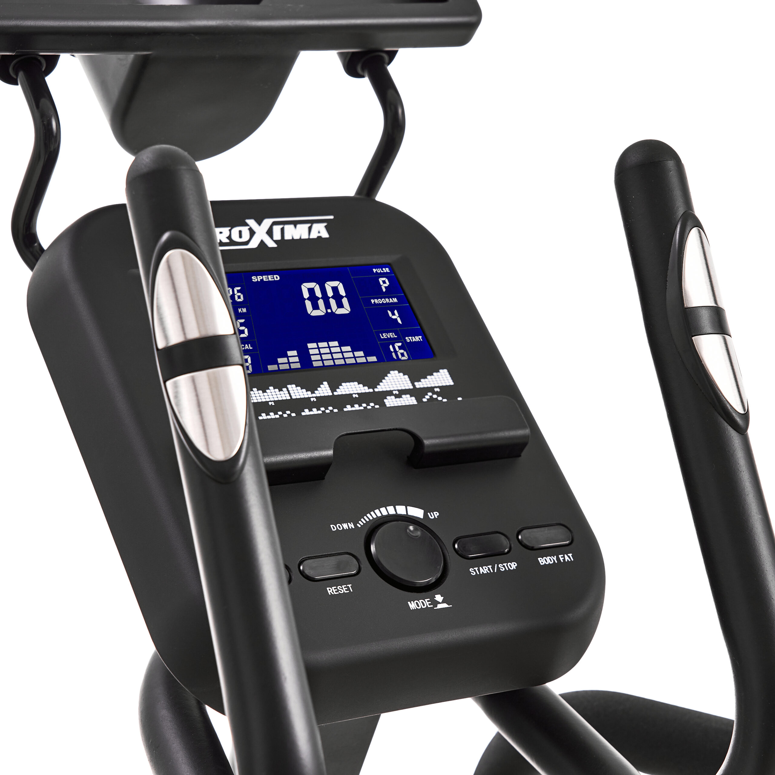 Эллиптический тренажер Proxima Amanda является бюджетной версией переднеприводного эллиптического тренажера с увеличенной длиной шага.