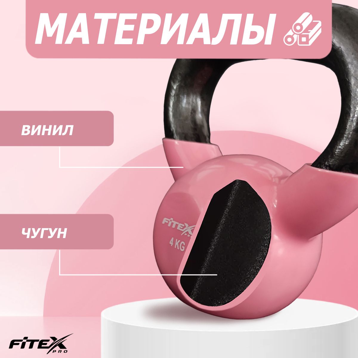 Гиря FITEX PRO сделана из чугуна и имеет плотное виниловое покрытие, которое не окрашивает стены и пол, снизит шум и убережет кожу рук от раздражения.