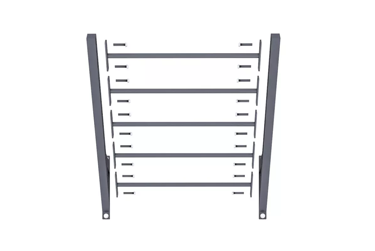 Кронштейны Monkey Bar крепятся под углом примерно 45 градусов и позволяет вам организовать свой небольшой наклонный рукоход. В комплект к данным кронштейнам не входят перекладины, их необходимо приобрести отдельно пройдя по ССЫЛКЕ. Для вашей безопасности Monkey Bar необходимо устанавливать только на закрепленные на анкерные болты стойки рамы.