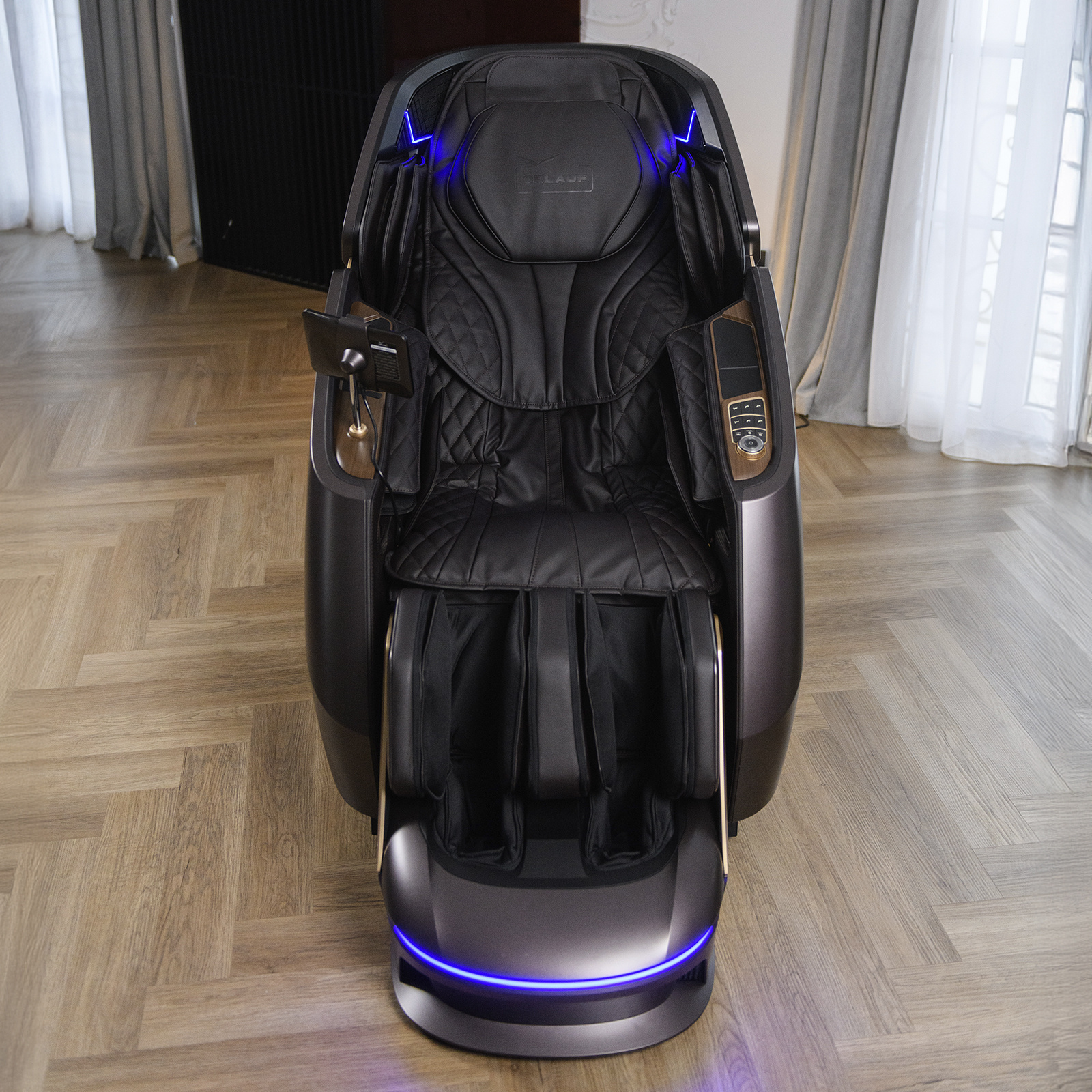Модель Orlauf Angel дополнена рядом приятных опций, включая встроенные Bluetooth-колонки, систему ароматерапии и ионотерапии, беспроводную зарядку и USB-порт. Уникальная функция определения состояния здоровья измеряет ключевые показатели, такие как ЧСС, уровень кислорода, степень усталости и качество микроциркуляции.