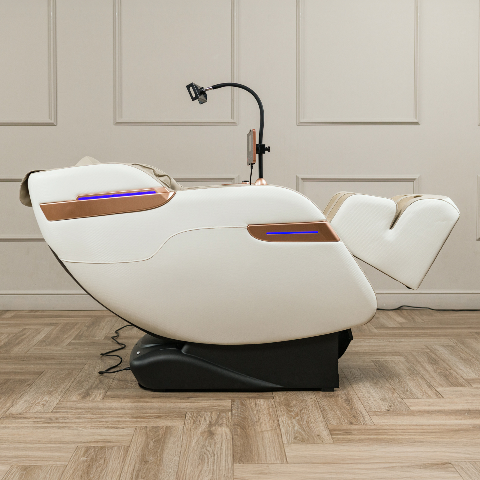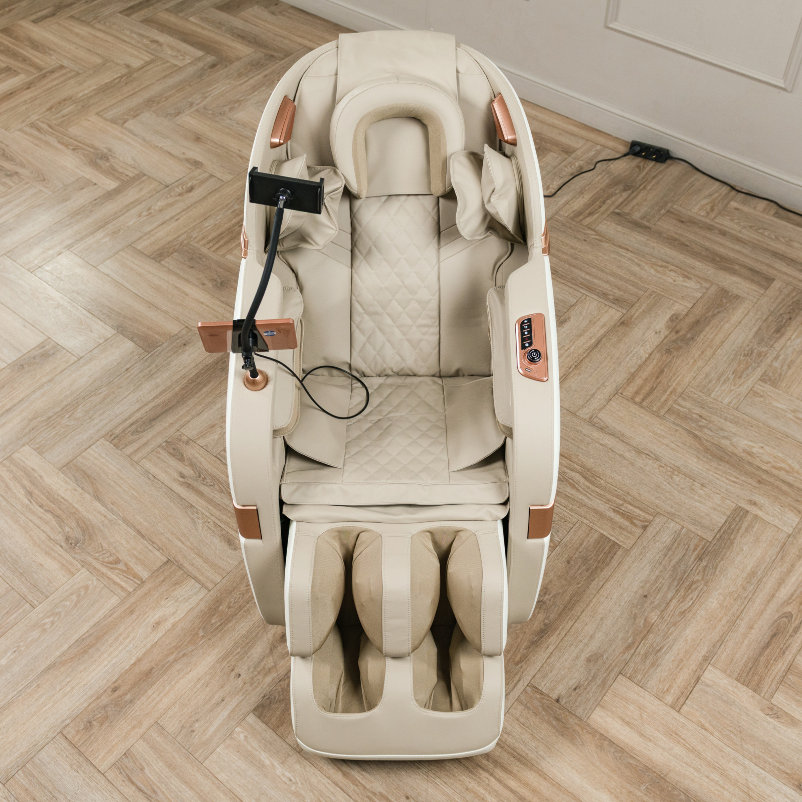 Управление креслом реализовано через планшет и кнопки быстрого доступа, а специальная подставка для телефона дополнена элементами управления. Orlauf Mainz дополняется встроенными Bluetooth-колонками для прослушивания музыки и транспортировочными роликами для удобного перемещения. Стильный дизайн в цвете Peach Ease и отделка Abriebfest из износостойких материалов делают Orlauf Mainz не только функциональным устройством, но и стильным элементом интерьера.