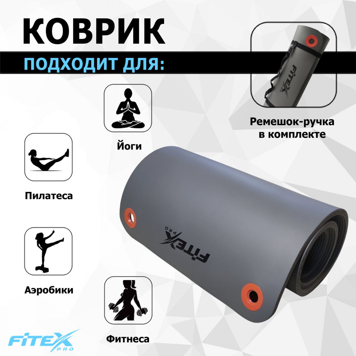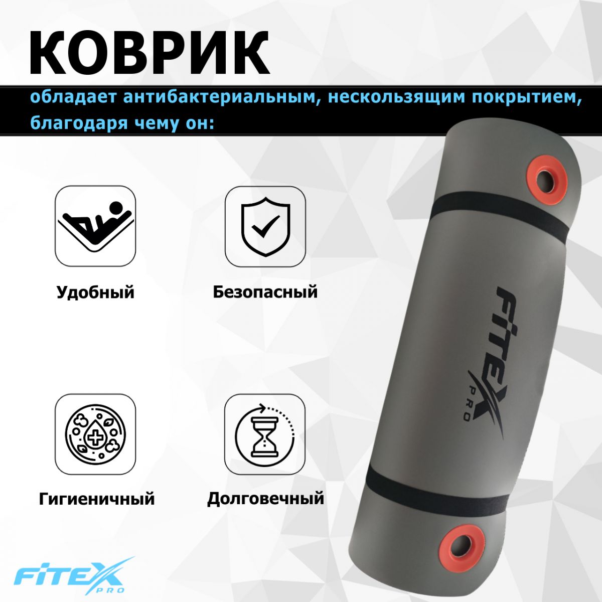 Мат гимнастический 180х60х1.25 см FITEX PRO изготовлен из вспененного материала поливинилхлорида.