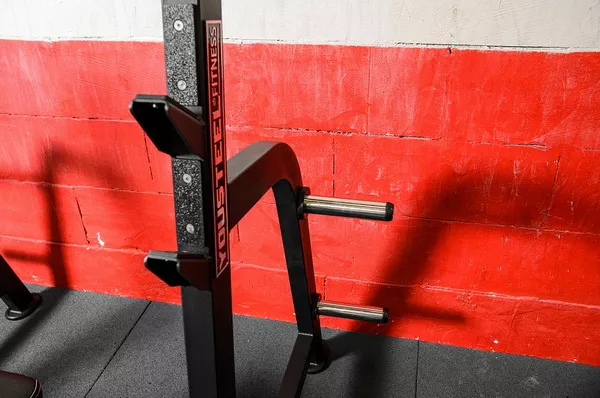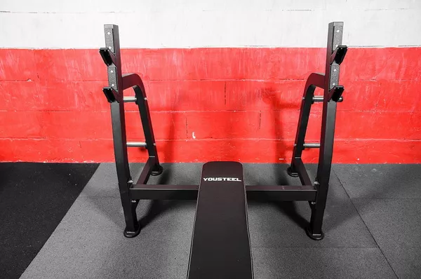 Мощная, устойчивая горизонтальная олимпийская скамья для жима лежа.