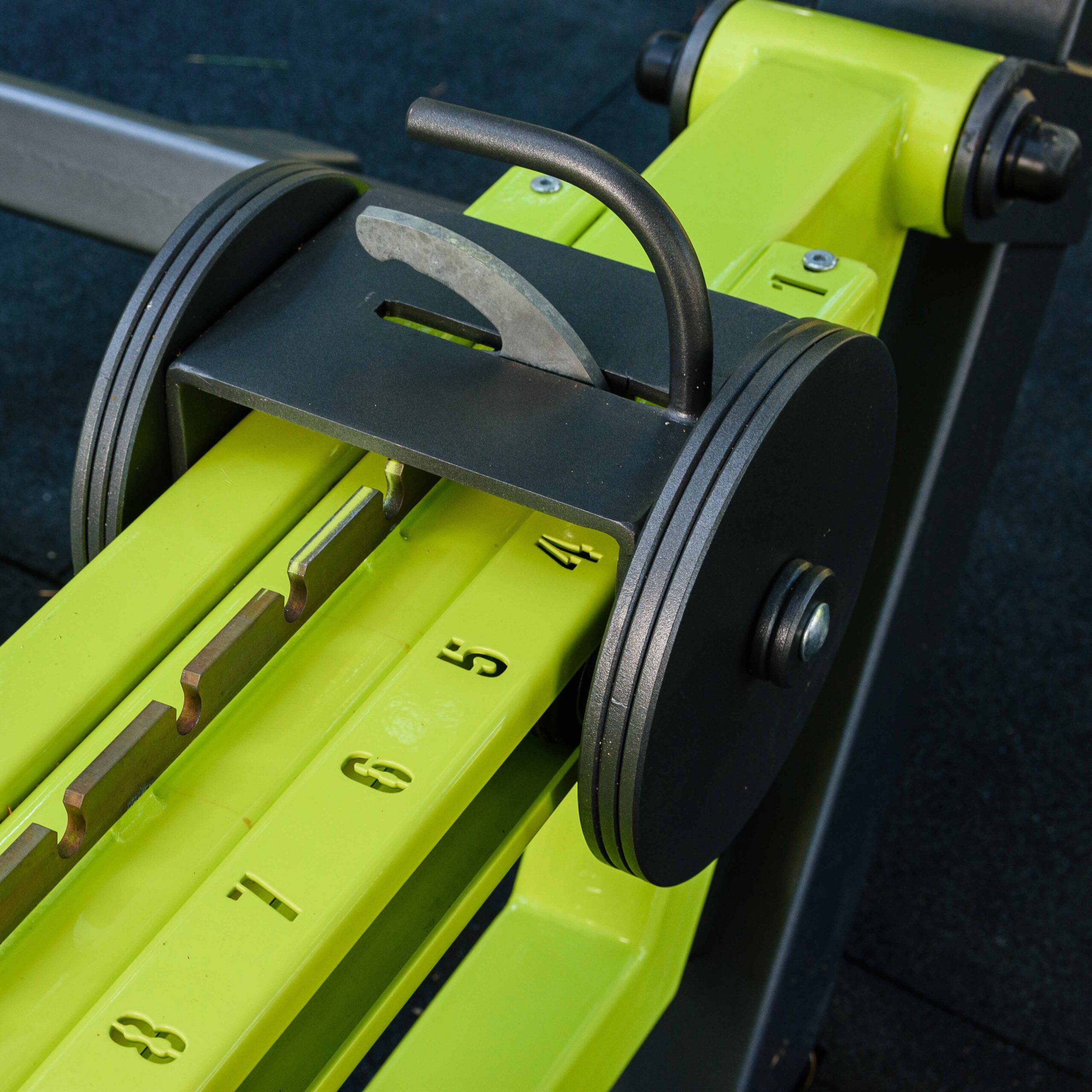 Подвижные рычаги оснащены передвижными грузовыми блоками из листового металла толщиной 8 мм, перемещающимися на роликах диаметром 75 мм с фиксацией по зубчатой рейке.