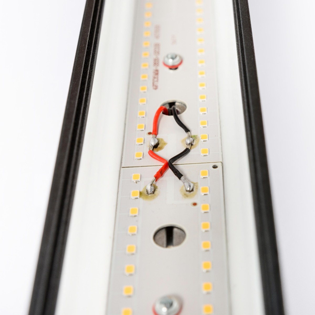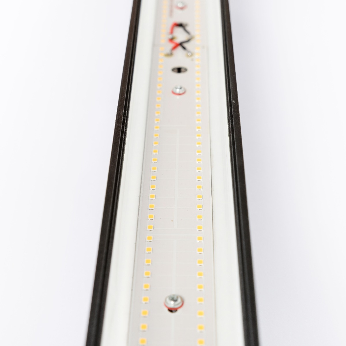 Источник света: светодиодная лента серии 2835R (размер диодов 2,8×3,5 мм). Плотность размещения: 12 диодов в одном ряду (24 диода в сегменте). Метр светильника состоит из 10 сегментов – плотность размещения 240 светодиодов на метр.