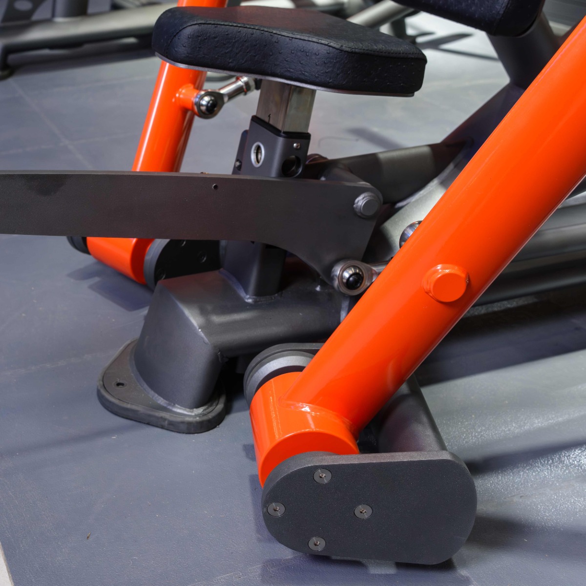 Опорные элементы тренажёра оснащены подпятниками сложной геометрической формы, выполненными из износостойкой резины толщиной 20 мм с металлическим основанием. Конструкция обеспечивает устойчивость тренажера и защиту поверхности от механических повреждений.