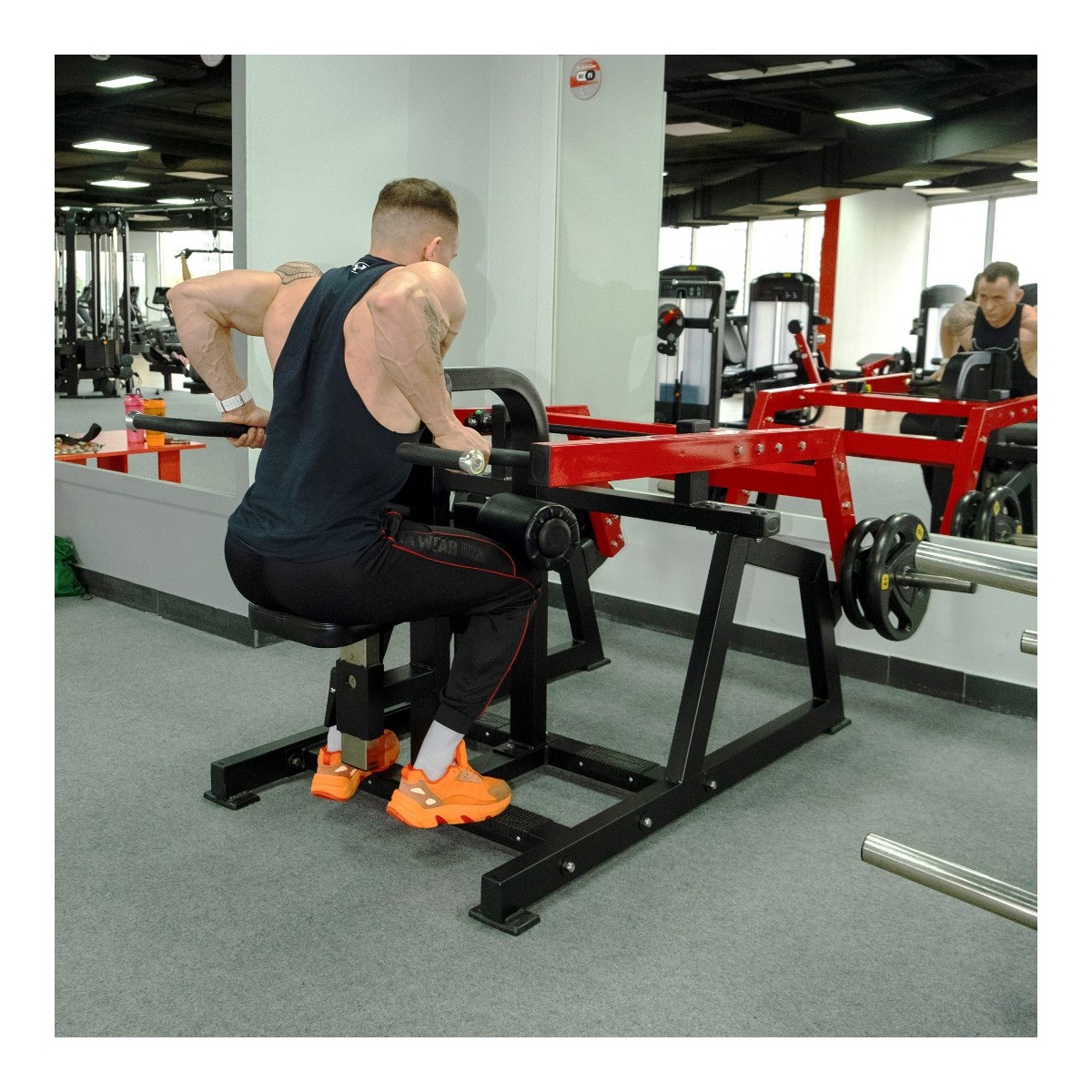 Область применения: Профессиональная;Форма сечения рамы: Прямоугольная|Квадратная;Толщина стенки рамы: 3 мм;Диаметр втулки для дисков: 50 мм;Размеры тренажера: 169 х 159 х 106 смВес тренажера: 125 кг