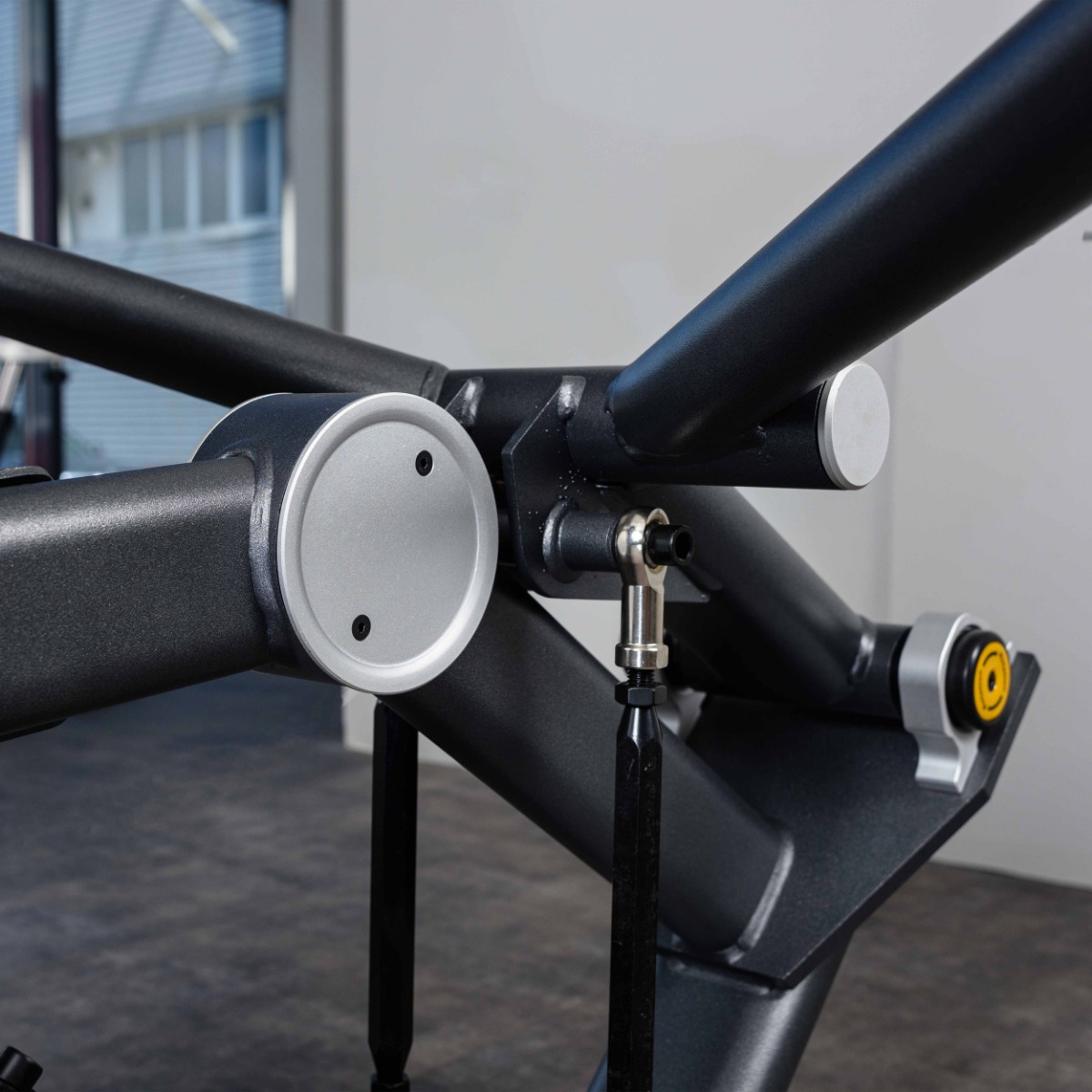 Четыре подпятника круглой формы выполнены из листового металла с резиновыми защитными кожухами, обеспечивают устойчивость тренажера и предохраняют напольное покрытие от повреждений.