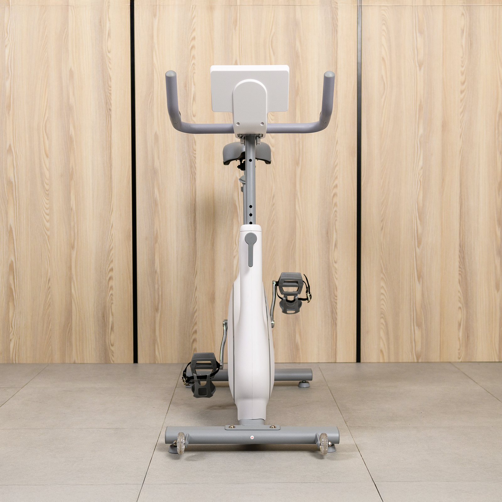 Управление осуществляется с помощью многофункциональной кнопки на консоли с LED-дисплеем. Консоль отображает параметры тренировки, включая пульс, измеряемый сенсорными датчиками на руле. Это позволяет контролировать интенсивность нагрузки и следить за прогрессом.