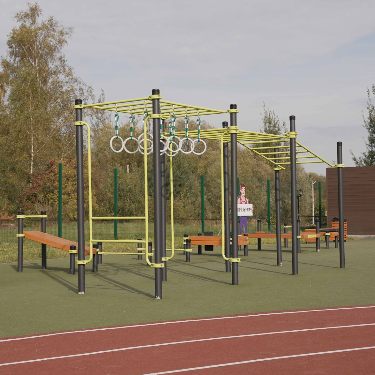 В состав комплекса входят четыре опорных столба: два высотой 1700 мм, два высотой 1000 мм.