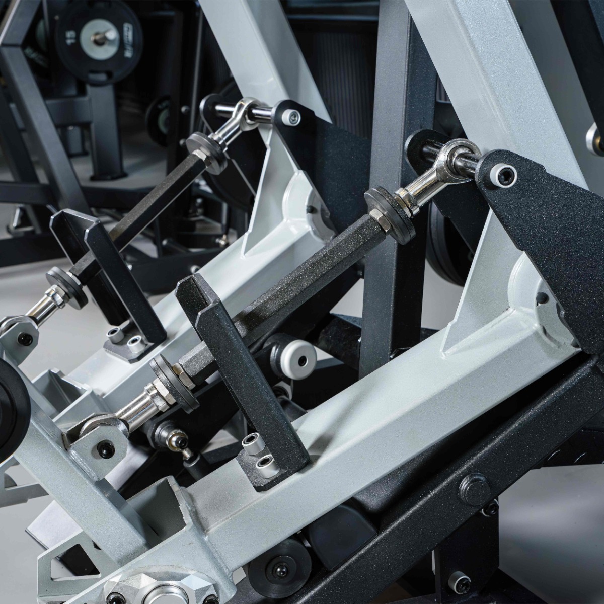 Накопители на подвижных рычагах и статичные для хранения оборудованы кольцами из плотной резины для предотвращения соприкосновения дисков с рамой тренажера и амортизации при размещении свободных весов на накопителях.